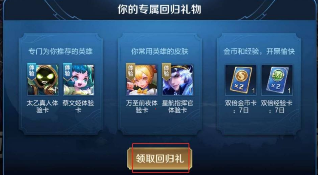 王者荣耀可靠消息发布,一般情况下如果玩家超过了15天没有登陆王者荣耀游戏就可以领取官方馈赠的回归礼包,如下图。