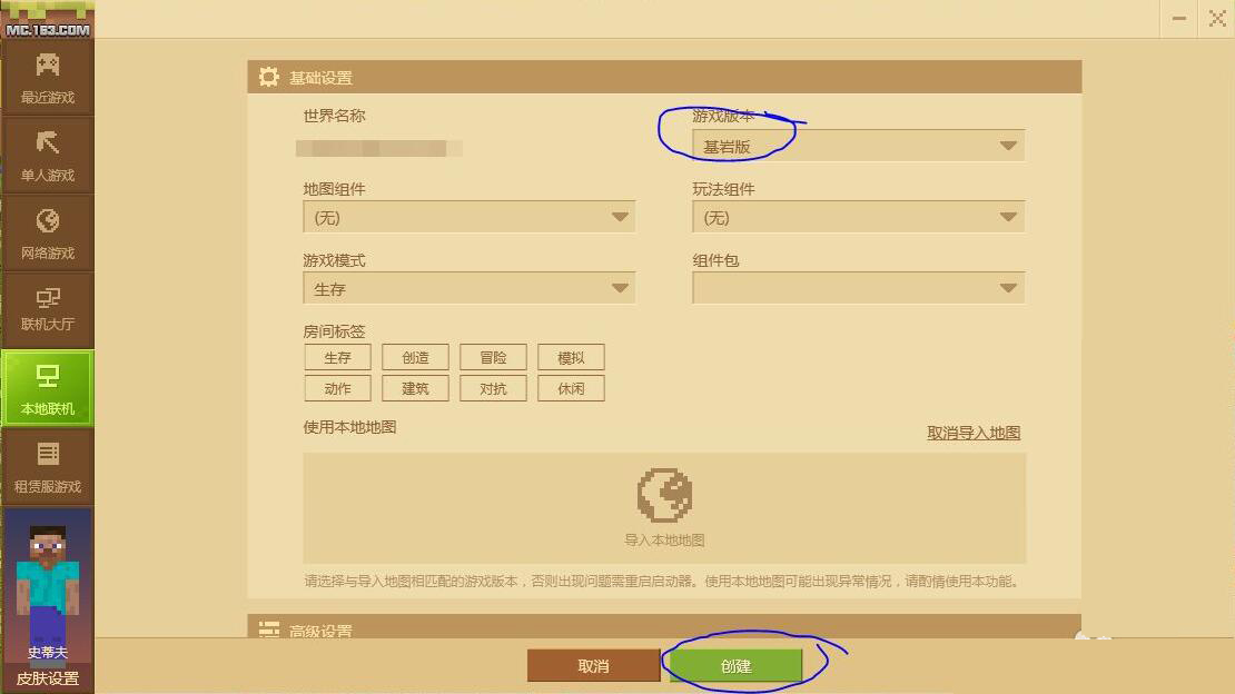 3.选择基岩版,然后选好自己想要的地图设置后,点击创建