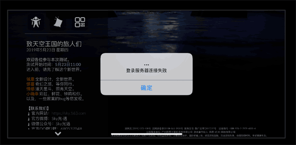2.服务器拥挤问题,光遇登录的时候显示连接服务器失败,但是网络没问题,那么有可能是玩家数量太多了,所以服务器的网络拥挤,导致出现了这个问题,这个问题的解决方法就是避开高峰期再登陆,一般晚饭后就正常了。
