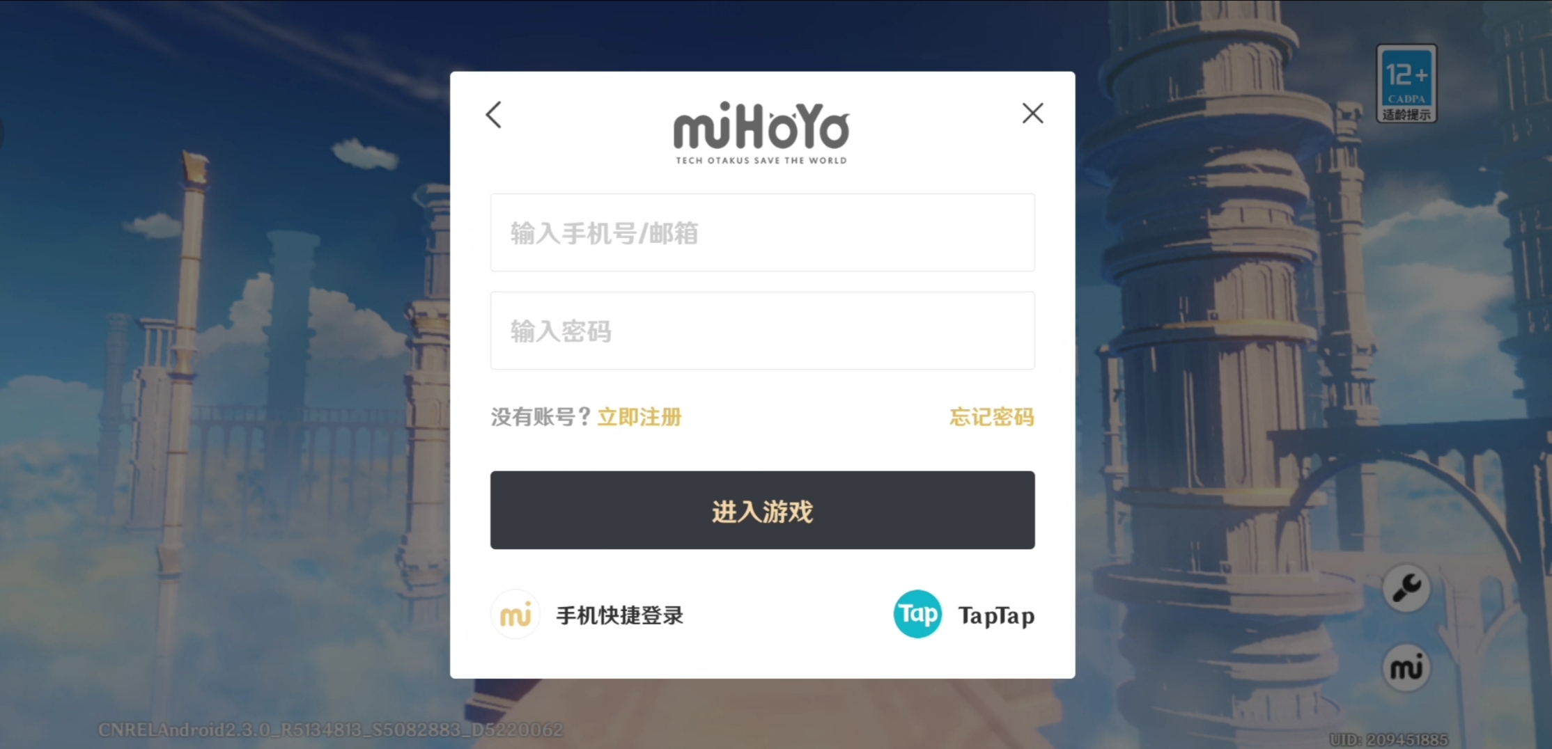 2、点击原神图标进入游戏之后就可以用 网易邮箱进行登陆啦。