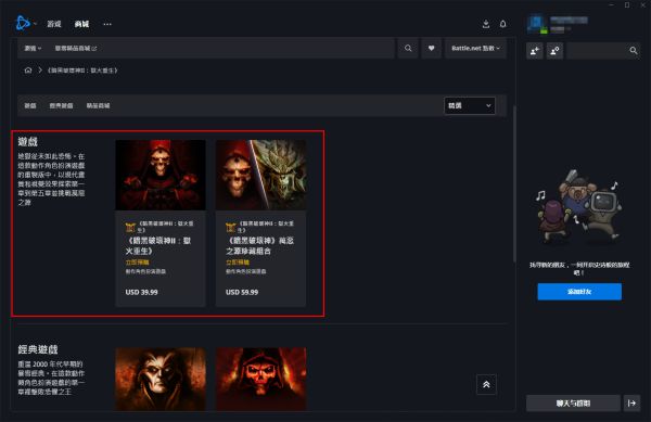 这里需选择红框中的游戏,下方为暗黑2原版,上方才是重制版。