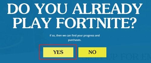 3、之后会问我们有没有玩过堡垒之夜,选择【yes】。