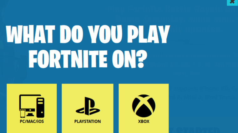 3,在什么设备上玩fortnite,选择PC/MAC/iOS。