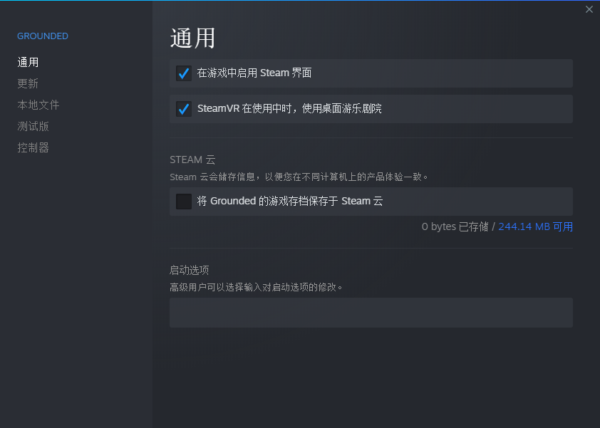 1、打开steam,右键Grounded游戏名点击属性,通用设置中,STEAM云储存下的选项取消。