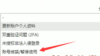 9、在分类选项中选择账号被禁用,点击提交后等待回复即可