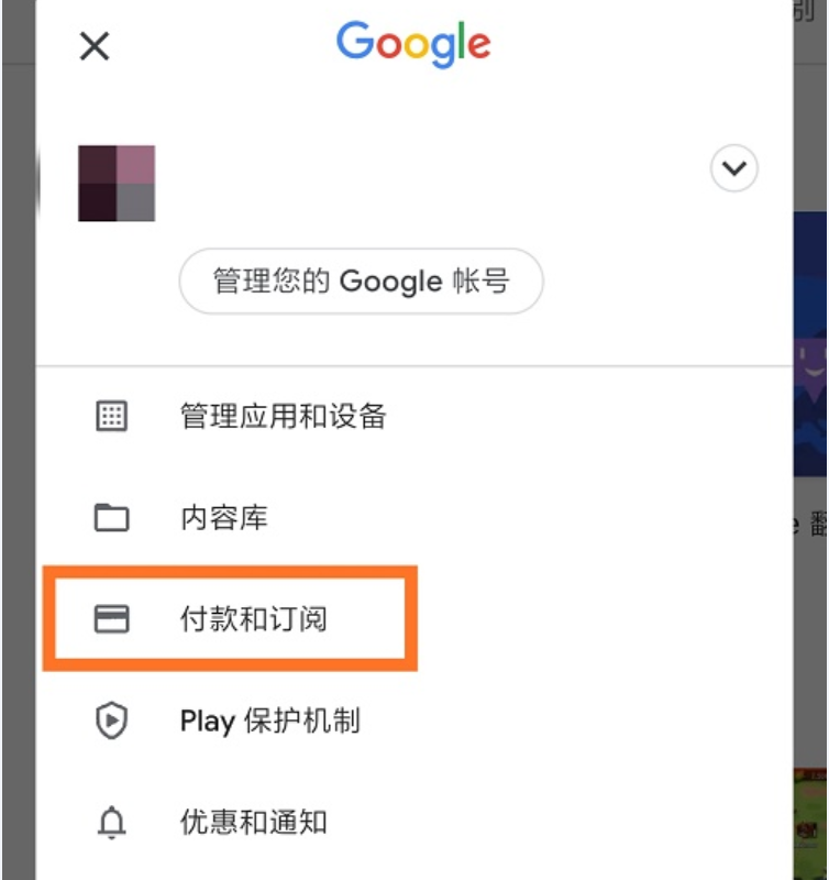 2、将谷歌账号切换至测试地区:打开谷歌商店,点击头像,点击付款和订阅,在点击付款方式,最后点击添加信用卡或借记卡