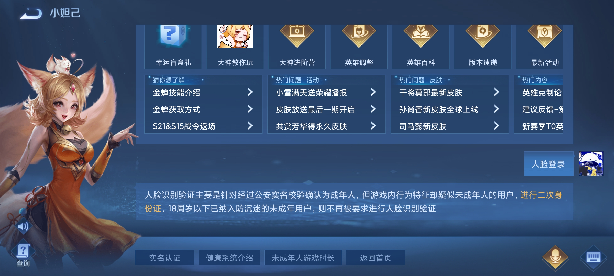 王者新赛季更新不需要人脸登录。