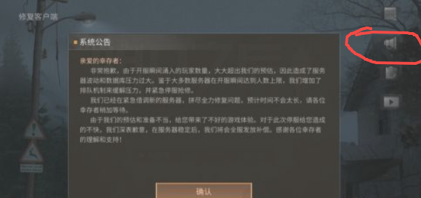 3.首先点击屏幕右上角的喇叭的图标,这个是游戏系统公告,来看看是不是出现维护了,如果维护了大家都登陆不上。