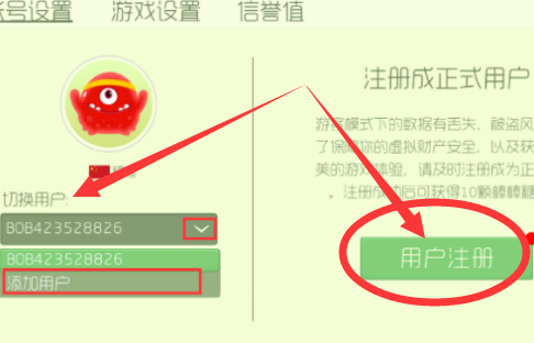 4、之后可以在该页面的左侧进行用户的切换或者在页面右侧点击“用户注册”按钮。