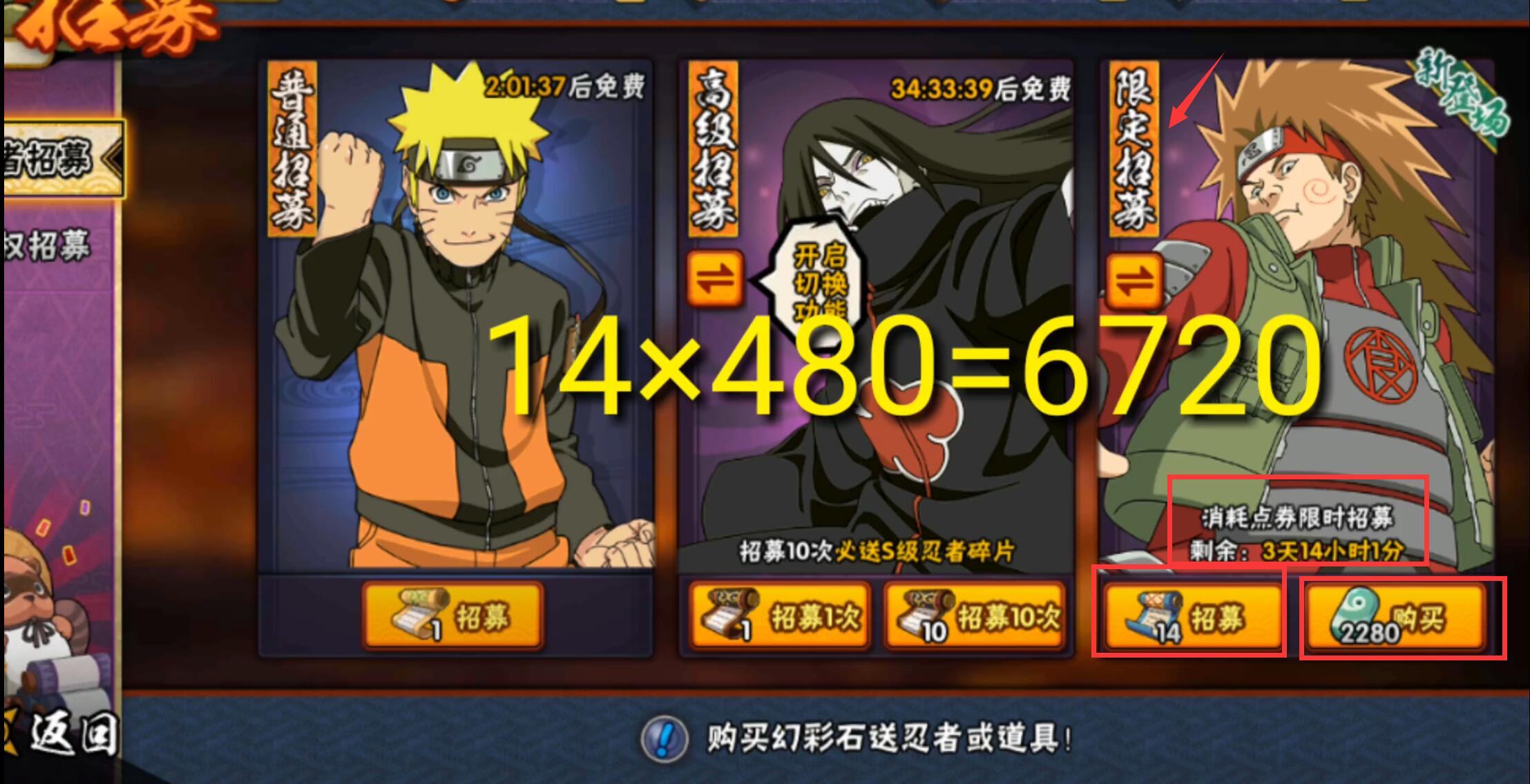 3、丁次(忍界大战)是一个限定招募的忍者,需要用14张忍者之印来换取,一张480金币,加起来就是6720金币,或者是使用2280点券来获取,单单依靠价格来说就已经比其他忍者贵了,而且他自身的强度非常高,有霸体有抓取,普攻也相对平稳。