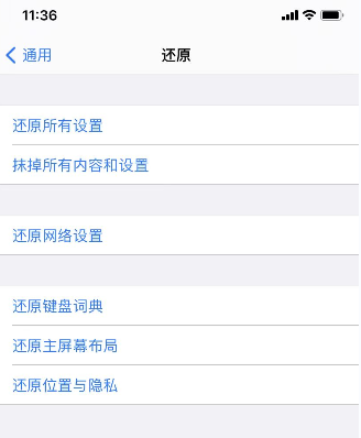 2.进入手机设置->通用->还原->还原网络设置