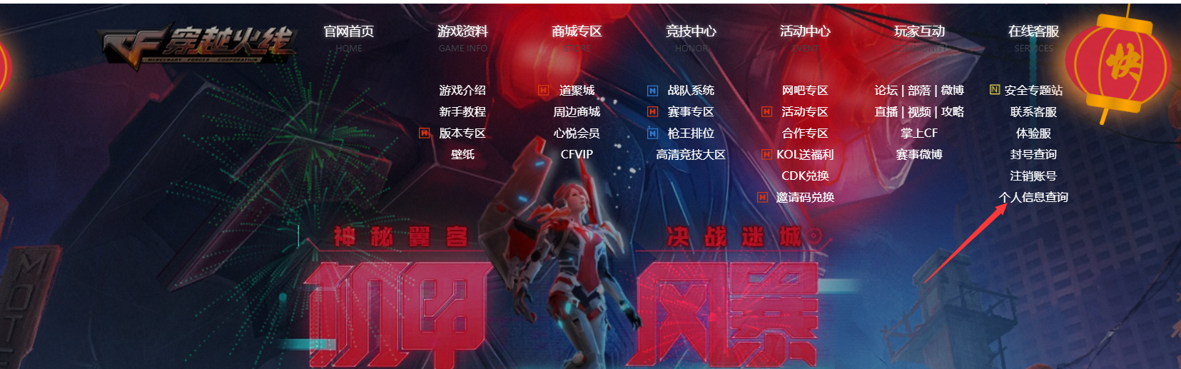 1、首先打开穿越火线官网,点击右上方的个人信息查询。