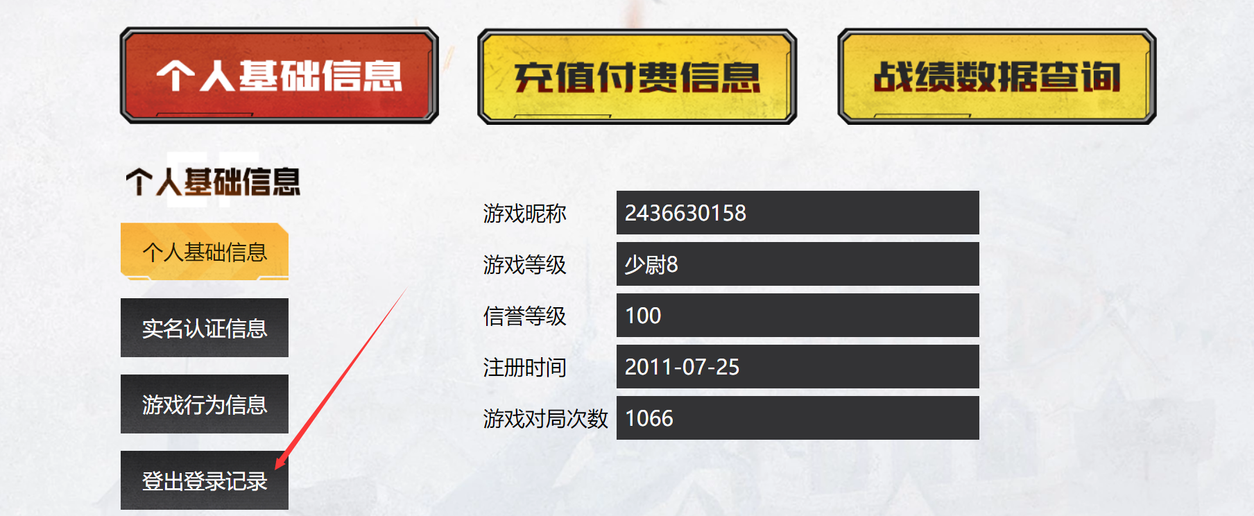 2、进入之后下滑到个人基础信息这里,然后点击登入登出记录。