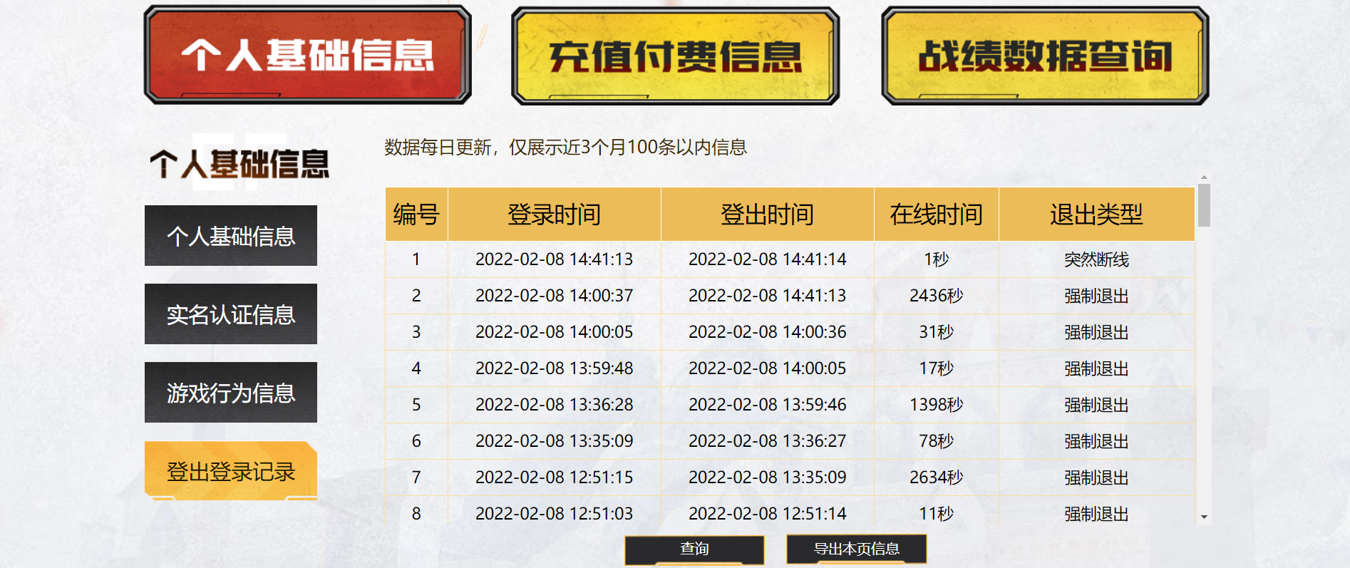 3、点击之后然后点击查询,即可查询三个月之内的登陆记录了。