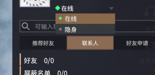 2、在好友界面点击在线字样,并选择在线界面中的隐身选项就可以对好友隐身了,对好友显示为离线状态。