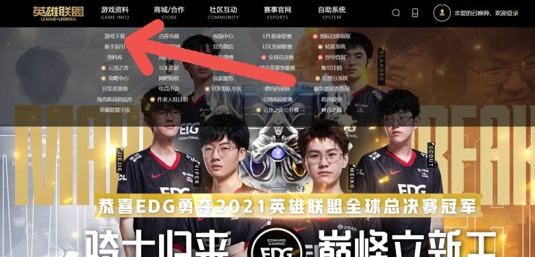 在浏览器进入英雄联盟官网,点击游戏下载,如下图所示