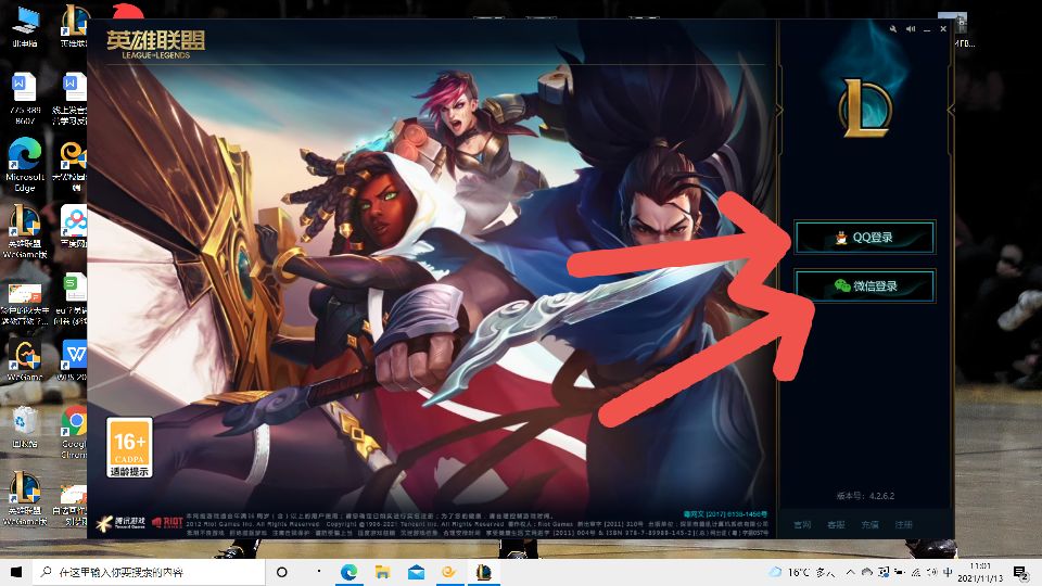 打开英雄联盟,用QQ号和微信号都可登录,如下图所示