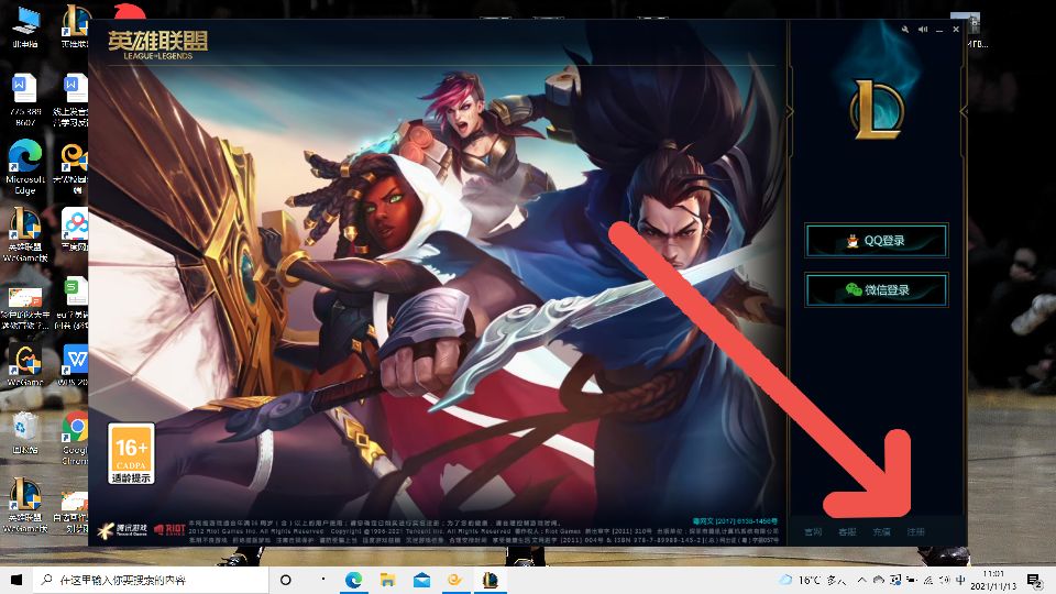 下载英雄联盟客户端(也可以使用《we game》下载英雄联盟),打开英雄联盟客户端,点击qq登录或者微信登录即可完成注册